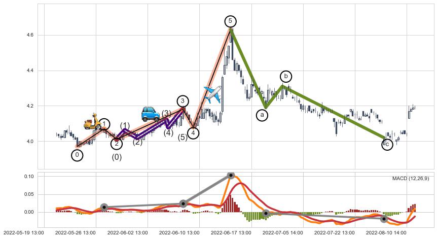 ➣ a,c调整浪MACD, RSI, KDJ走势都【未出现】背离,abc走势延续, 5浪反转概率增强