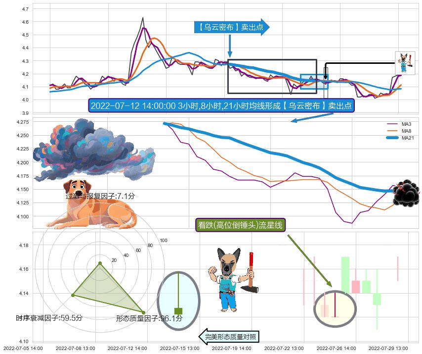 | 11 🅚:【乌云密布】卖出点 ➕ 📈:趋势线上涨趋势原支撑已出现破位,猜想原支撑已变为阻力位(大周期均值回复) ☞ 看空信号 ⇥ 【均线】交织【图形】⇥ 综合量化分数: 45 | > |