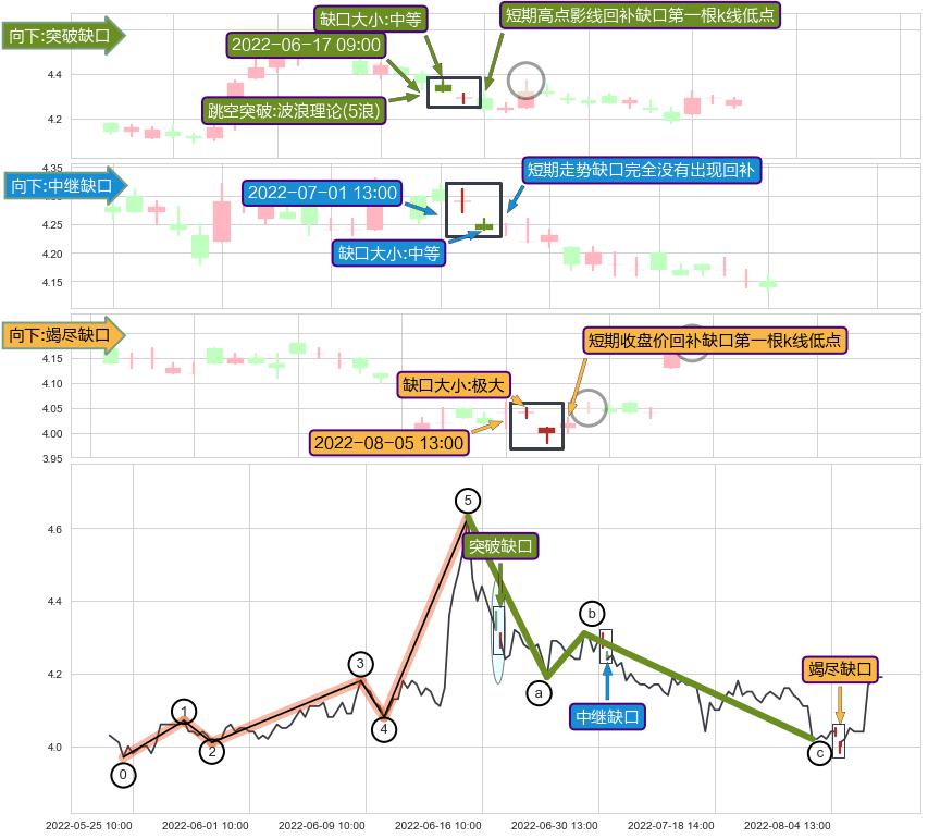 ➢ 2022-08-05 13:00形成:向下跳空【竭尽】缺口