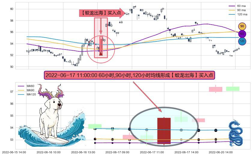 ⚀ 2022-06-17 11:00:00小时显现 60小时-90小时-120小时均线 【蛟龙出海】买入点 看多信号,后市看涨,买入