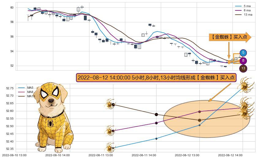 ⚀ 2022-08-12 14:00:00小时显现 5小时-8小时-13小时均线 【金蜘蛛】买入点 看多信号,后市看涨,买入