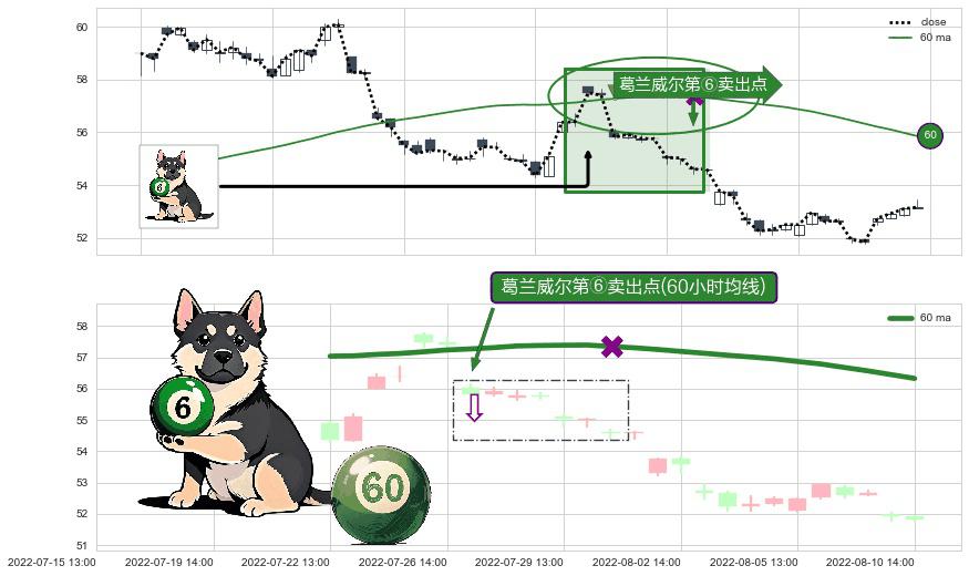 ⚀ 2022-07-27 13:00:00-小时显现 葛兰威尔均线 60小时均线 第⑥卖出点 走势反转见顶信号,后市看跌,卖出信号