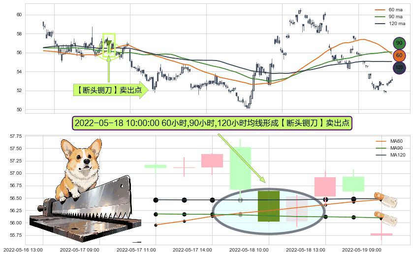 ⚀ 2022-05-18 10:00:00小时显现 60小时-90小时-120小时均线 【断头铡刀】卖出点 看空信号,后市看跌,卖出