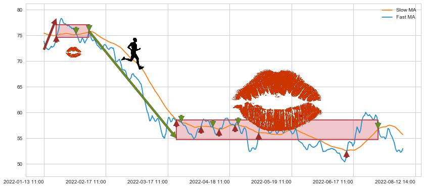 03-22 10:00至07-14 14:00 慢线与快线多次接触,存在上下穿越,有缠绕