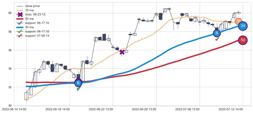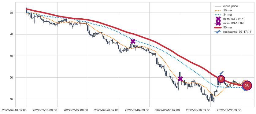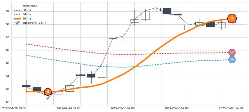 ⚃ 在破位点附近ma走势明显平稳迹象,稍后的走势中ma下垂迹象也出现,信号【可信度中等偏上】