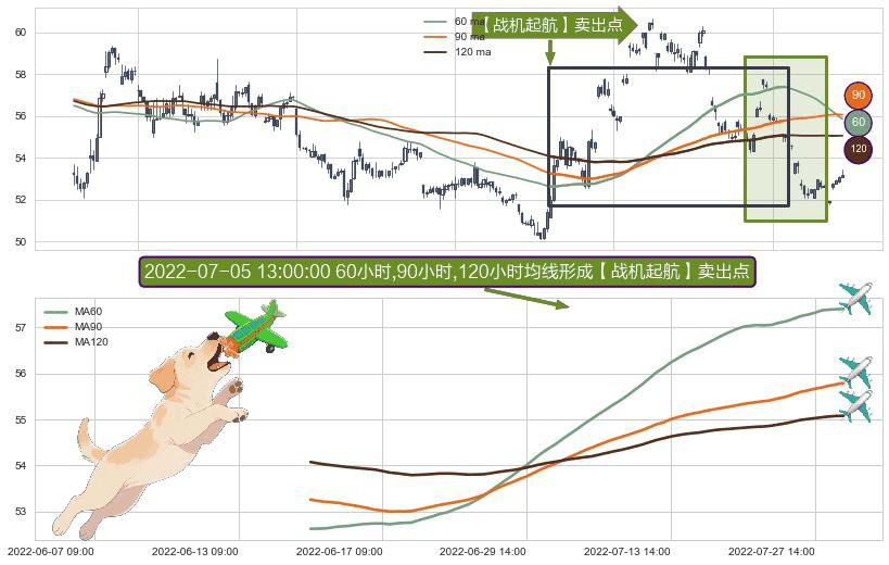 ⚀ 2022-06-15 09:00:00小时-2022-07-29 14:00:00小时显现 60小时-90小时-120小时均线 【战机起航】卖出点 看空信号,后市看跌,卖出