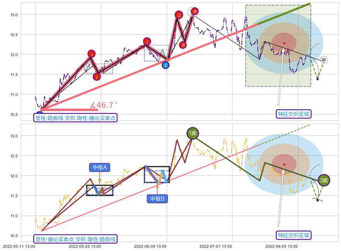 ➢ 【已完成】缠论 起点:05-13:13,完成第1中枢A,完成第2中枢B,终点:06-15:13,缠论共111交易小时