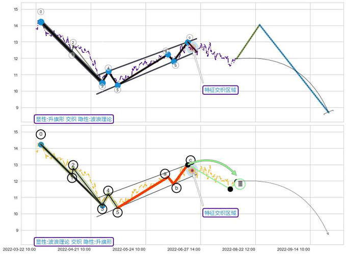 ➢ 升旗形与波浪理论信号事件周期长度级别相同,同周期信号事件