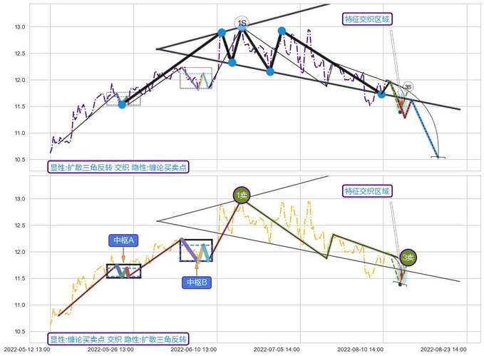 ➢ 扩散三角反转与缠论买卖点信号事件周期长度级别相同,同周期信号事件