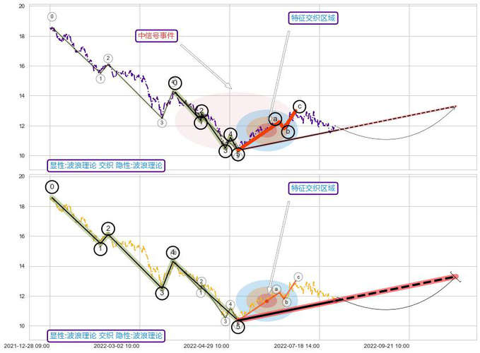 ➣ 波浪理论:猜想击穿突破c点后继续上涨 → 上涨 → 机会信号 → 小趋势跟踪