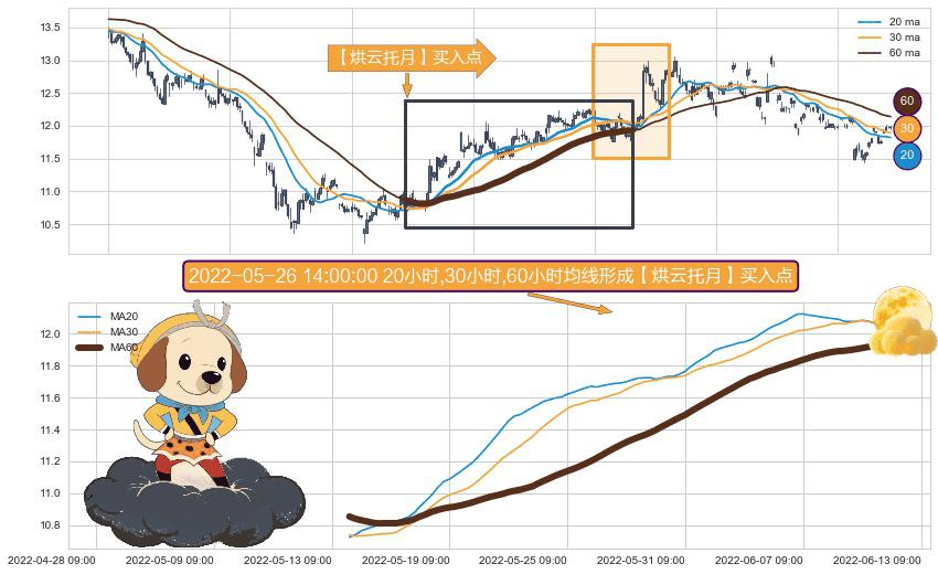 ⚀ 2022-05-13 13:00:00小时-2022-06-10 09:00:00小时显现 20小时-30小时-60小时均线 【烘云托月】买入点 看多信号,后市看涨,买入