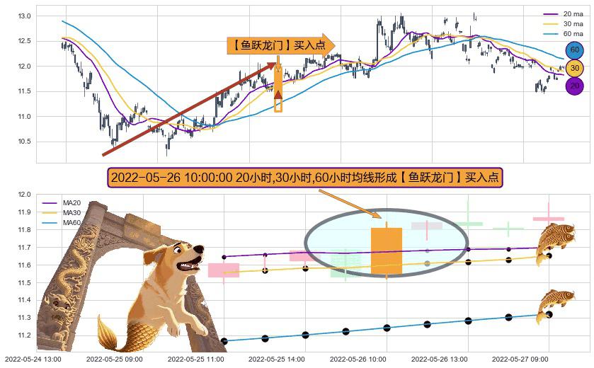 ⚀ 2022-05-26 10:00:00小时显现 20小时-30小时-60小时均线 【鱼跃龙门】买入点 看多信号,后市看涨,买入