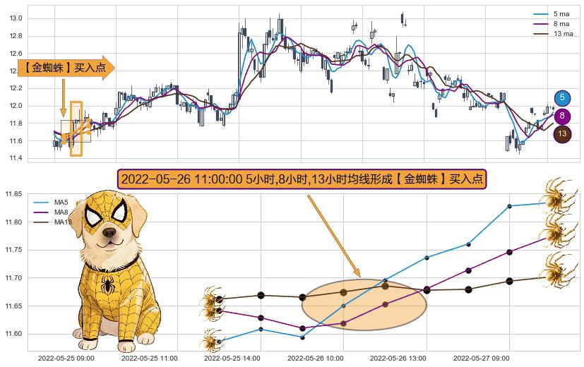 ⚀ 2022-05-26 11:00:00小时显现 5小时-8小时-13小时均线 【金蜘蛛】买入点 看多信号,后市看涨,买入