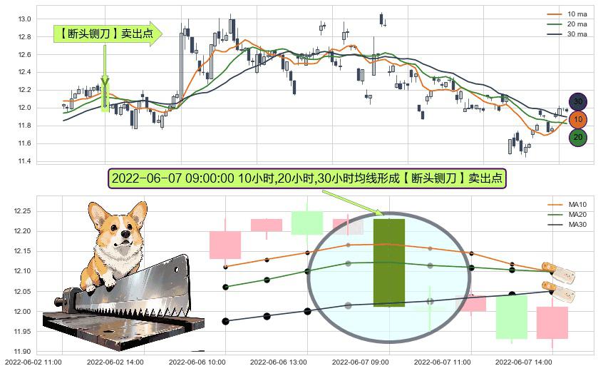 ⚀ 2022-06-07 09:00:00小时显现 10小时-20小时-30小时均线 【断头铡刀】卖出点 看空信号,后市看跌,卖出