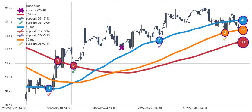 ⚂ 2022-05-25 14:00:00小时突然冒出一根大阳线,一下子顶穿三条均线且收盘价收在各条均线之上
