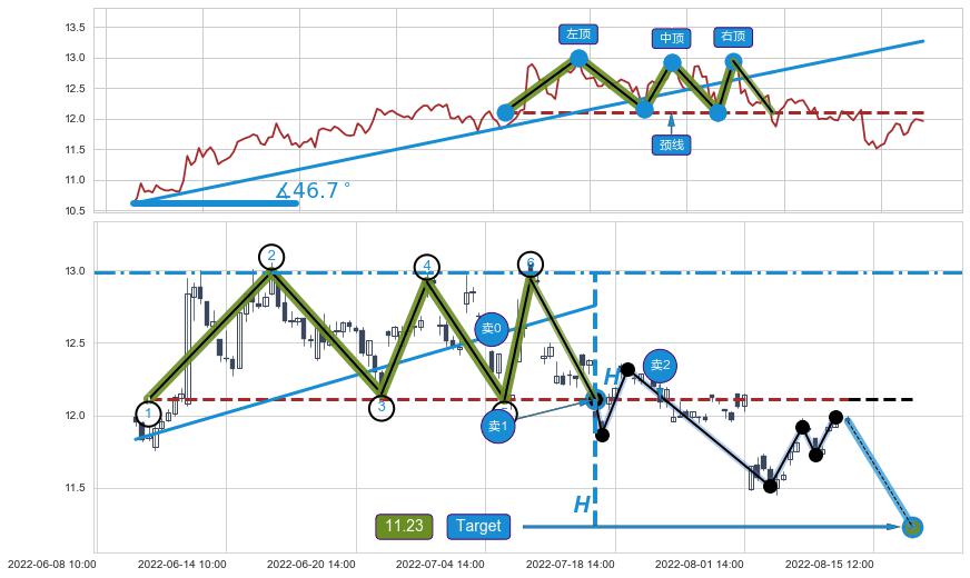 ➢ 【卖1】: 激进型 卖点→(07-15:13: 12.11 )形成突破三重顶【反转】形态