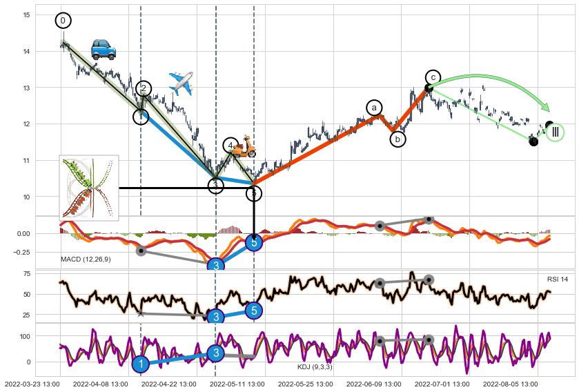 ➢ a,c调整浪MACD, RSI, KDJ走势都【未出现】背离,abc走势延续, 5浪反转概率增强