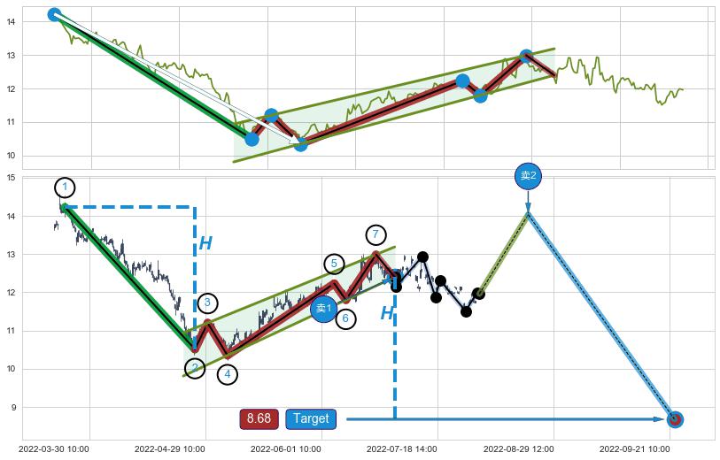 ➣ 最小中继整理跌幅→𝐇: 3.720 (𝐇旗杆的长度:旗杆起点→顶点)