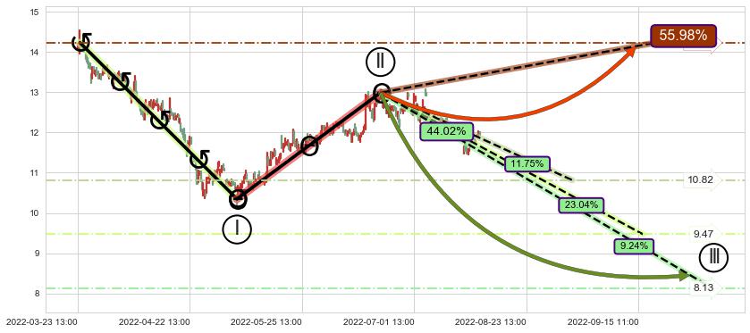 ♘ 支撑价格位10.49,可信任强度60.15%,距离最后交易2022-08-12 14:00形成的收盘价格11.96相差 -12.26%