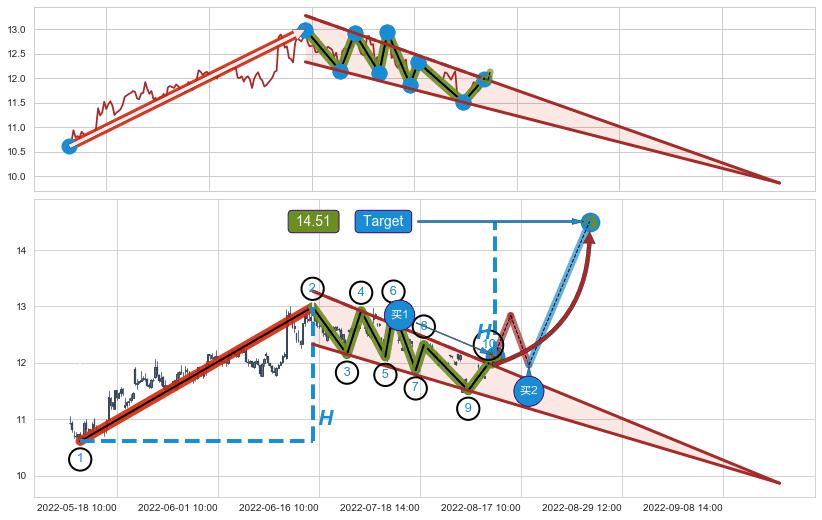 ➣ 【仅预测突破】最后价格:11.96与预测突破价格:12.13→【空间临近】后续最小【整理】第一目标价格→(08-24:14: 14.51 )