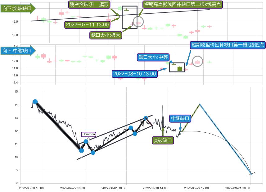➢ 2022-08-10 13:00形成:向下跳空【中继】缺口