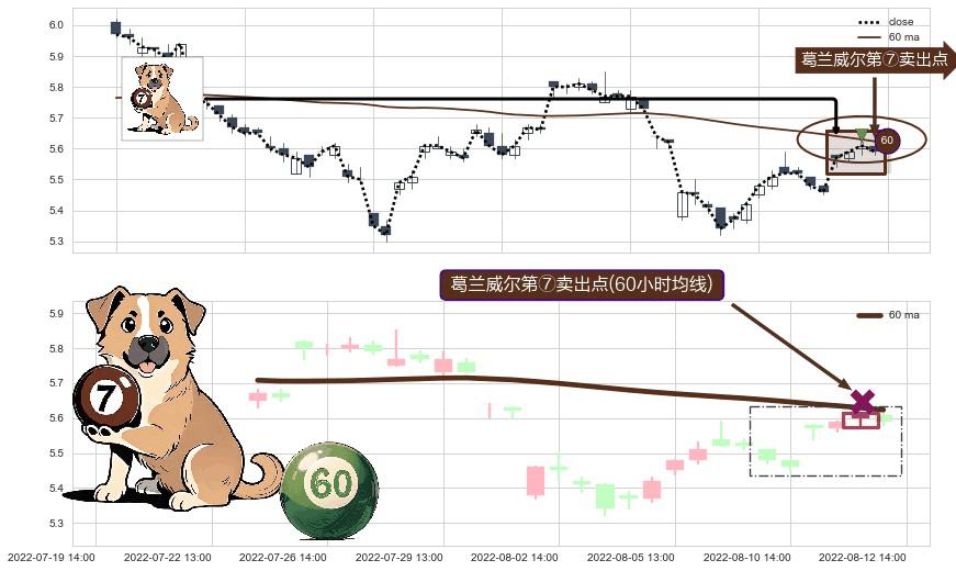 ⚀ 2022-08-12 13:00:00-小时显现 葛兰威尔均线 60小时均线 第⑦卖出点 下降趋势的中继信号,后市看跌,卖出信号