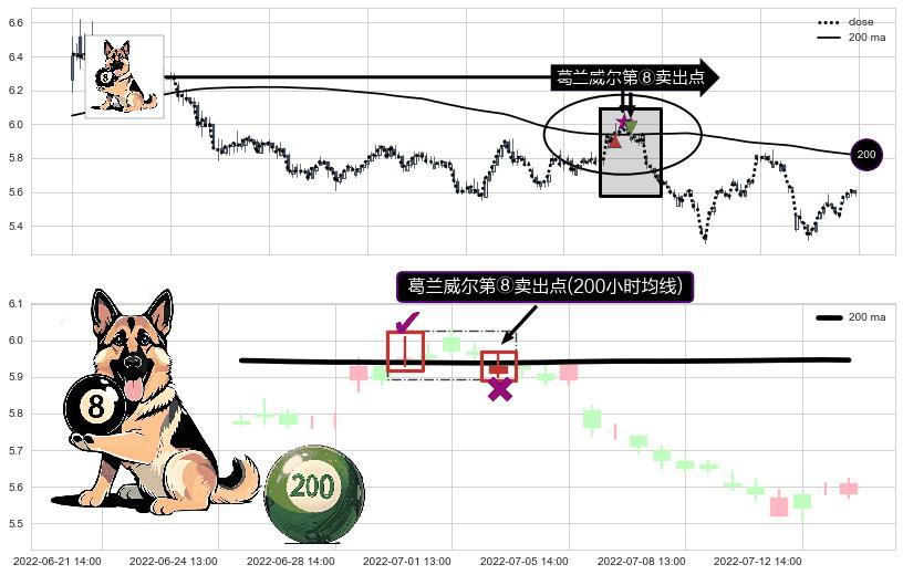 ⚀ 2022-07-04 13:00:00-小时显现 葛兰威尔均线 200小时均线 第⑧卖出点 下降趋势的中继信号,后市看跌,卖出信号