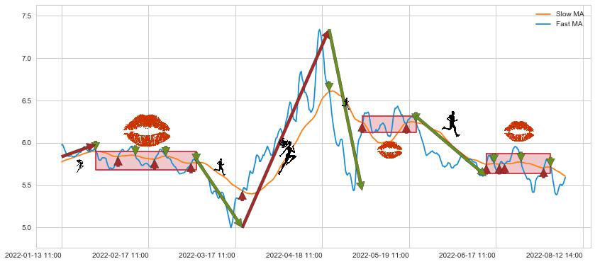 06-15 10:00至08-01 13:00 慢线与快线多次接触,存在上下穿越,有缠绕