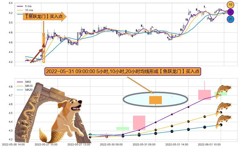 ⚀ 2022-05-31 09:00:00小时显现 5小时-10小时-20小时均线 【鱼跃龙门】买入点 看多信号,后市看涨,买入