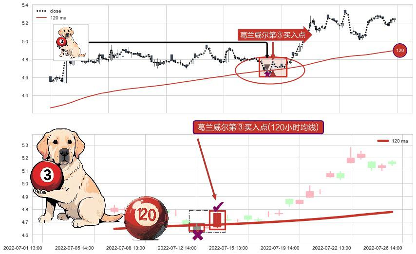 ⚀ 2022-07-13 14:00:00-小时显现 葛兰威尔均线 120小时均线 第③买入点 上升趋势的中继信号,后市看涨,买进信号