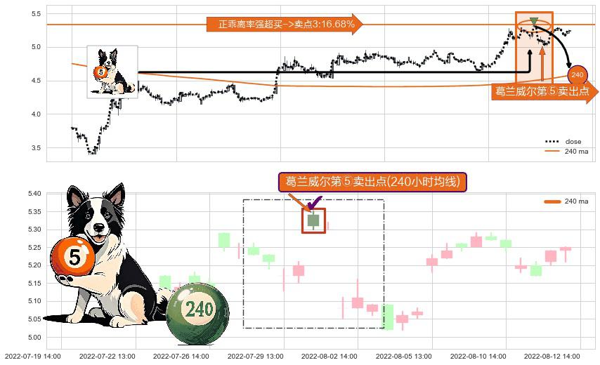 ⚀ 2022-08-01 13:00:00-小时显现 葛兰威尔均线 240小时均线 第⑤卖出点 上升趋势均值回复的短线回落信号,后市看跌,卖出信号