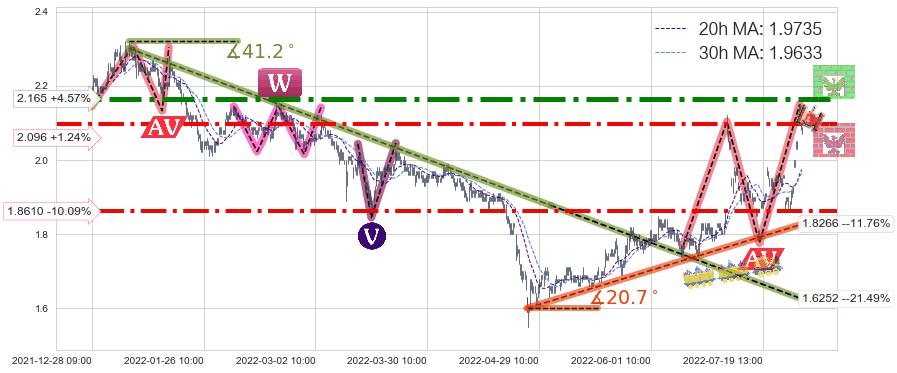 ♘ 阻力价格位2.165,可信任强度94.23%,距离最后交易2022-08-12 14:00形成的收盘价格2.070相差 +4.57%