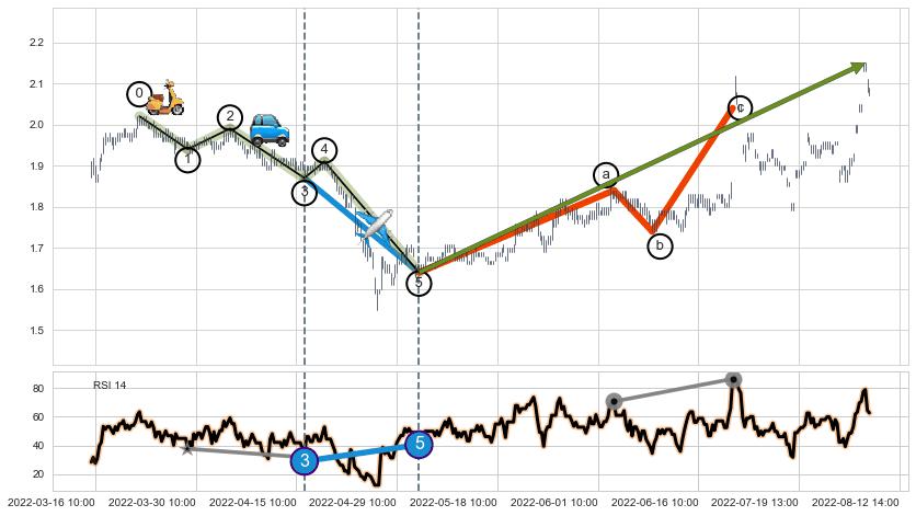 ➣ a,c调整浪MACD, RSI, KDJ走势都【未出现】背离,abc走势延续, 5浪反转概率增强
