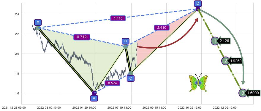 ➣ 未完成【蝴蝶】形态起点X: 01-18:09, 已到达C点: 07-15:14, 预测最终D点: 10-21:09, 共910交易小时
