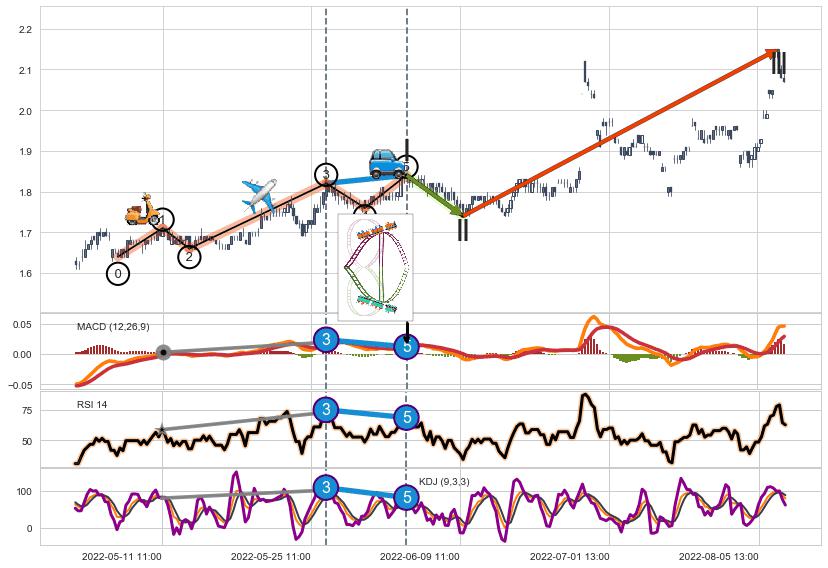 从2022-05-05 09:00至2022-05-20 09:00,共包含56个小时,阶段股价上涨2.51%,阶段股价变动位移路程比: 1 : 13