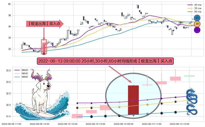 ⚀ 2022-06-13 09:00:00小时显现 20小时-30小时-60小时均线 【蛟龙出海】买入点 看多信号,后市看涨,买入