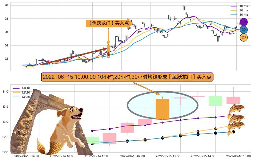 ⚀ 2022-06-15 10:00:00小时显现 10小时-20小时-30小时均线 【鱼跃龙门】买入点 看多信号,后市看涨,买入
