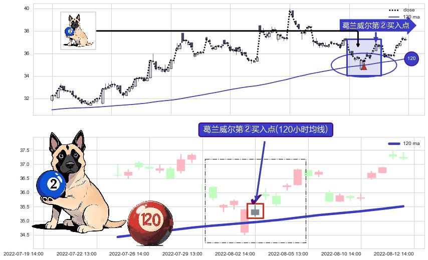 ⚀ 2022-08-02 14:00:00-小时显现 葛兰威尔均线 120小时均线 第②买入点 上升趋势的中继信号,后市看涨,买进信号