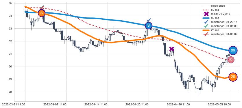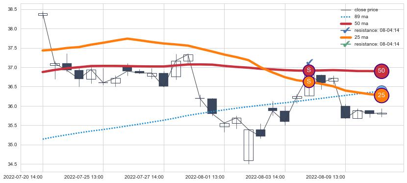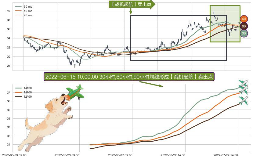 ⚀ 2022-05-25 09:00:00小时-2022-07-28 14:00:00小时显现 30小时-60小时-90小时均线 【战机起航】卖出点 看空信号,后市看跌,卖出