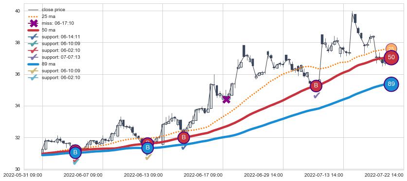 ⚄ 价格在均线获取支撑后已再次向上反弹了【较长】距离, 第②买入点 支撑效果得到【初步确认】