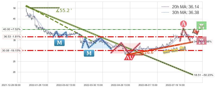 ♘ 阻力价格位40.00,可信任强度49.50%,距离最后交易2022-08-12 14:00形成的收盘价格37.20相差 +7.52%
