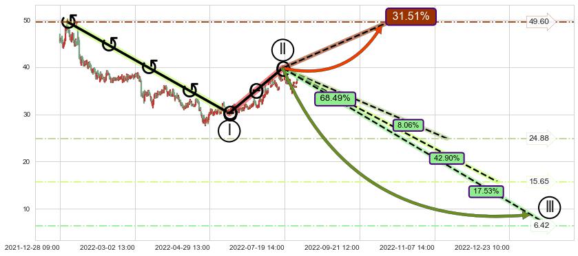 ➣ 大趋势循环浪继续向下概率68.49%