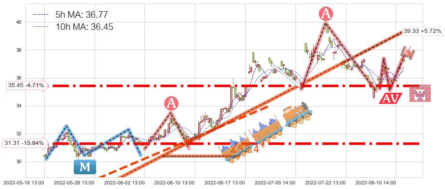 ♘ 支撑价格位35.45,可信任强度91.38%,距离最后交易2022-08-12 14:00形成的收盘价格37.20相差 -4.71%