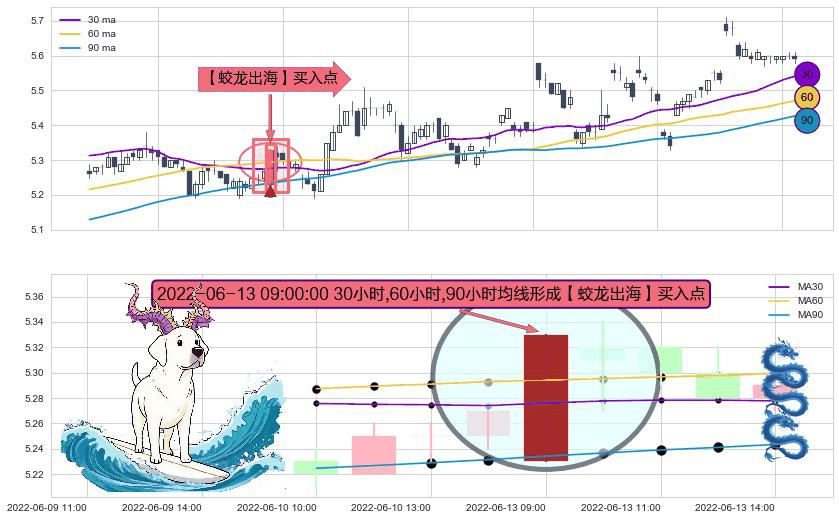 ⚀ 2022-06-13 09:00:00小时显现 30小时-60小时-90小时均线 【蛟龙出海】买入点 看多信号,后市看涨,买入