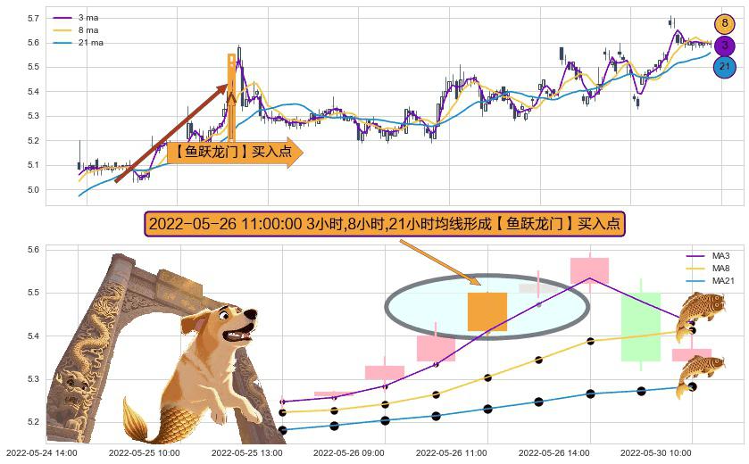 ⚀ 2022-05-26 11:00:00小时显现 3小时-8小时-21小时均线 【鱼跃龙门】买入点 看多信号,后市看涨,买入