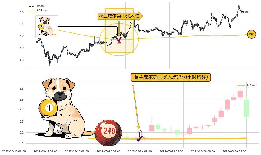 ⚀ 2022-05-23 13:00:00-小时显现 葛兰威尔均线 240小时均线 第买①入点 走势反转见底信号,后市看涨,买进信号