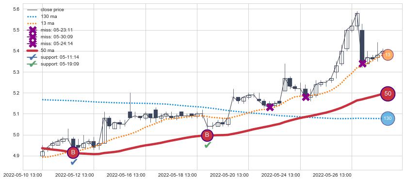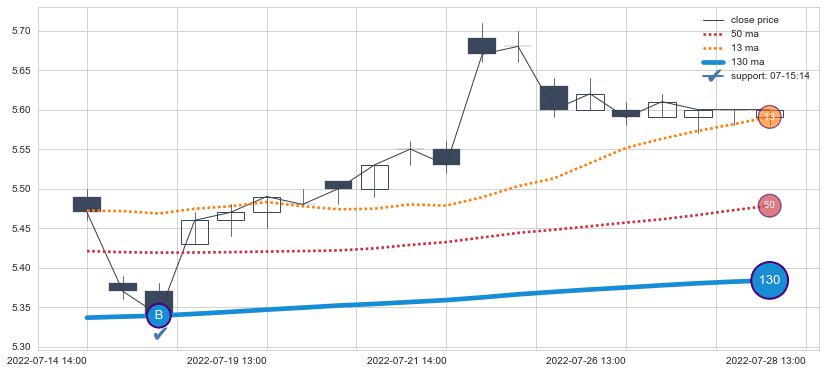 ⚂ 2022-07-15 14:00:00-小时均线向下破位,2022-07-18 13:00:00-小时重新上穿突破均线,均线支撑再次生效