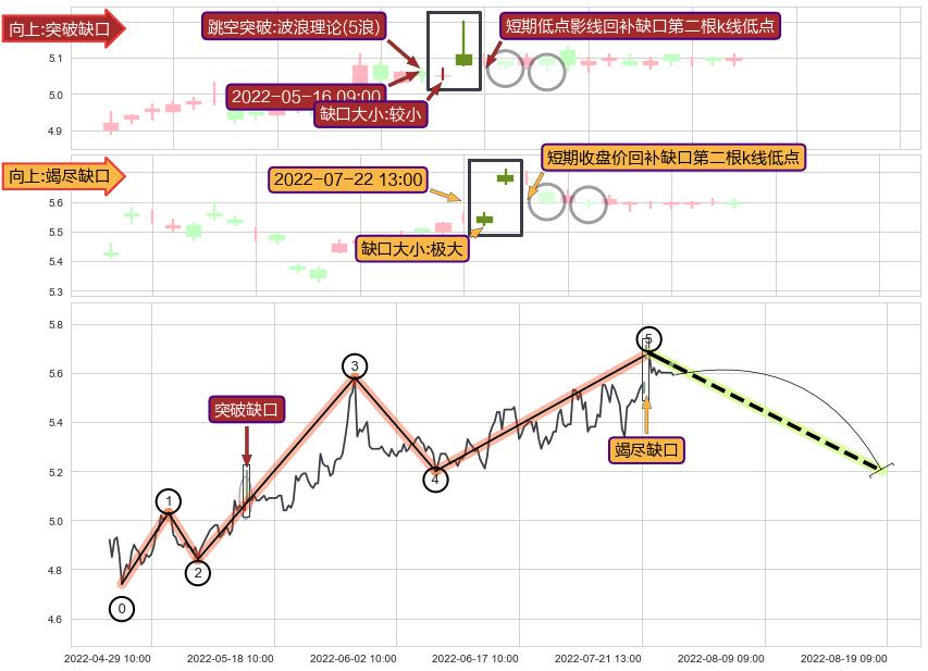 ➢ 2022-07-22 13:00形成:向上跳空【竭尽】缺口