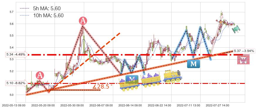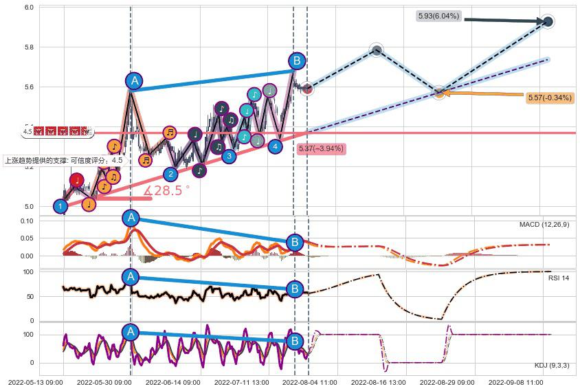 ➣ 预测:2022-08-23 09:00,【小幅回撤】稳定目前上涨趋势的前提下,预测价格:5.57
