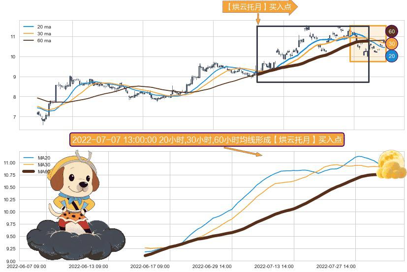 ⚀ 2022-06-15 11:00:00小时-2022-08-03 14:00:00小时显现 20小时-30小时-60小时均线 【烘云托月】买入点 看多信号,后市看涨,买入